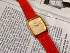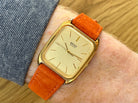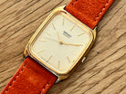 Seiko heavily inspired some line-ups to European Model Watches as European Influence crawled into Japan and became a hype, and this vintage seiko watch is a great example! This Seiko Chariot is a JDM (Japanese Domestic Market Model) and has a beautiful 28mm SGP stepped case with clean gold-coloured dial with a beautiful printed pattern.