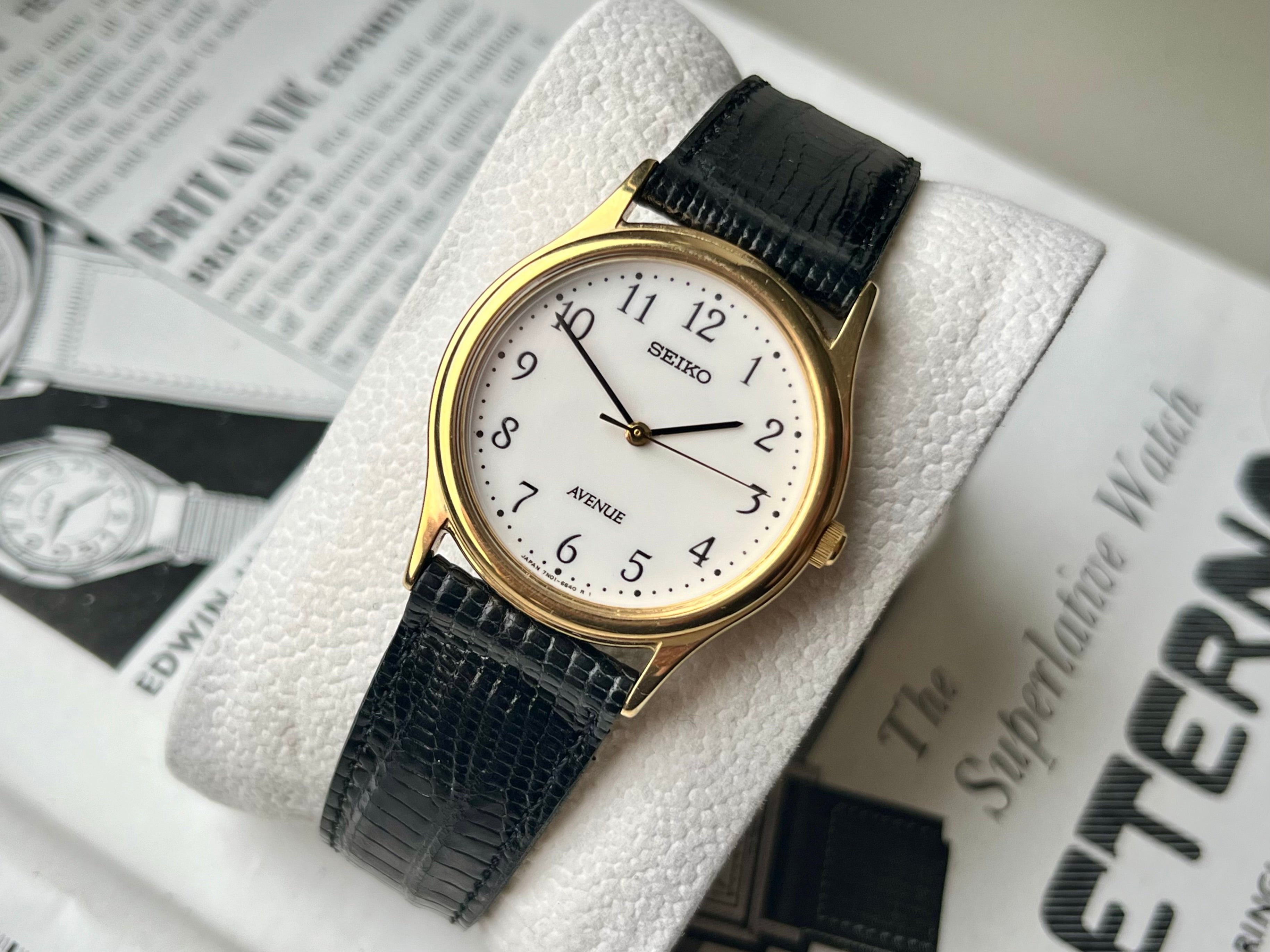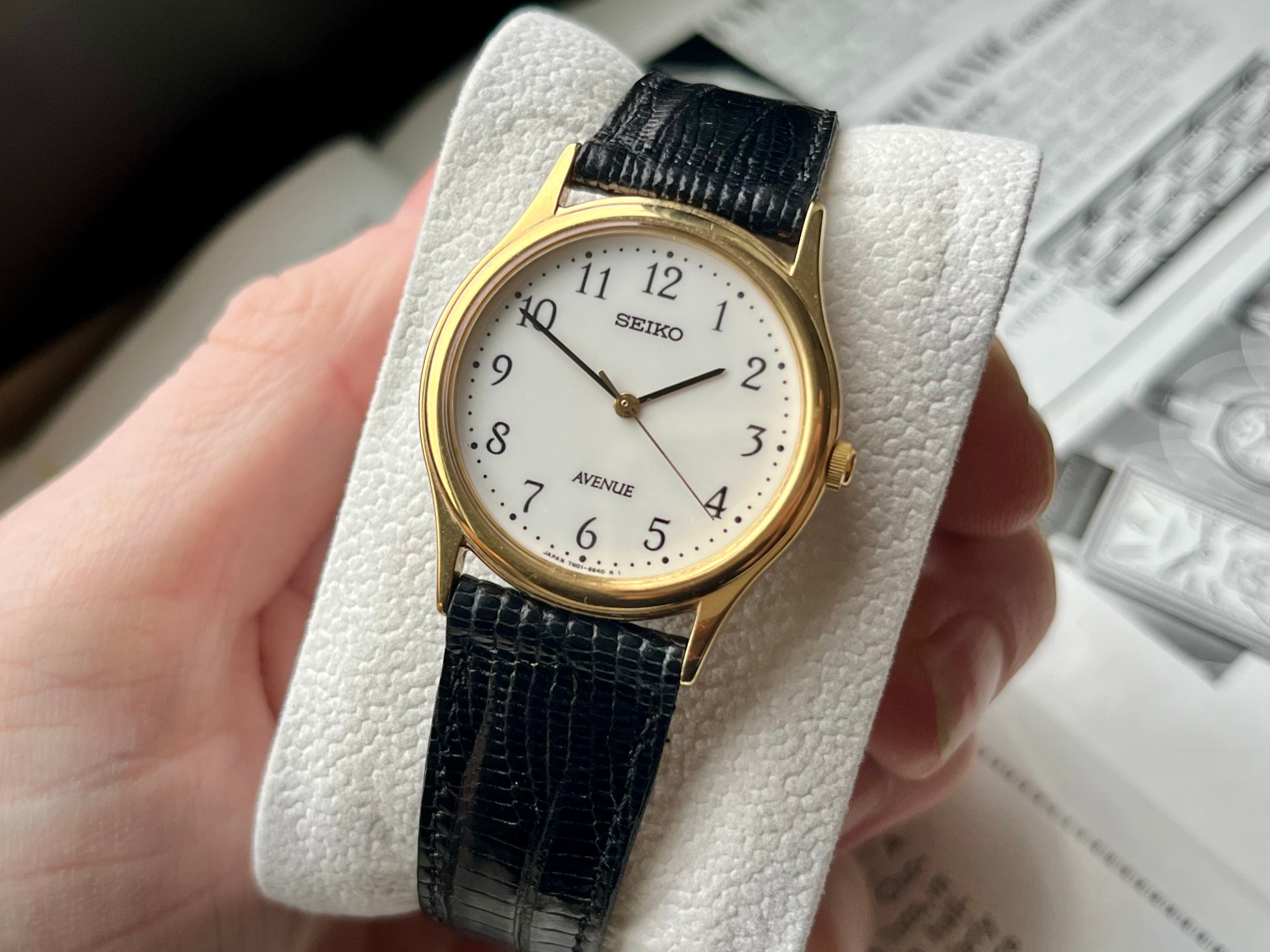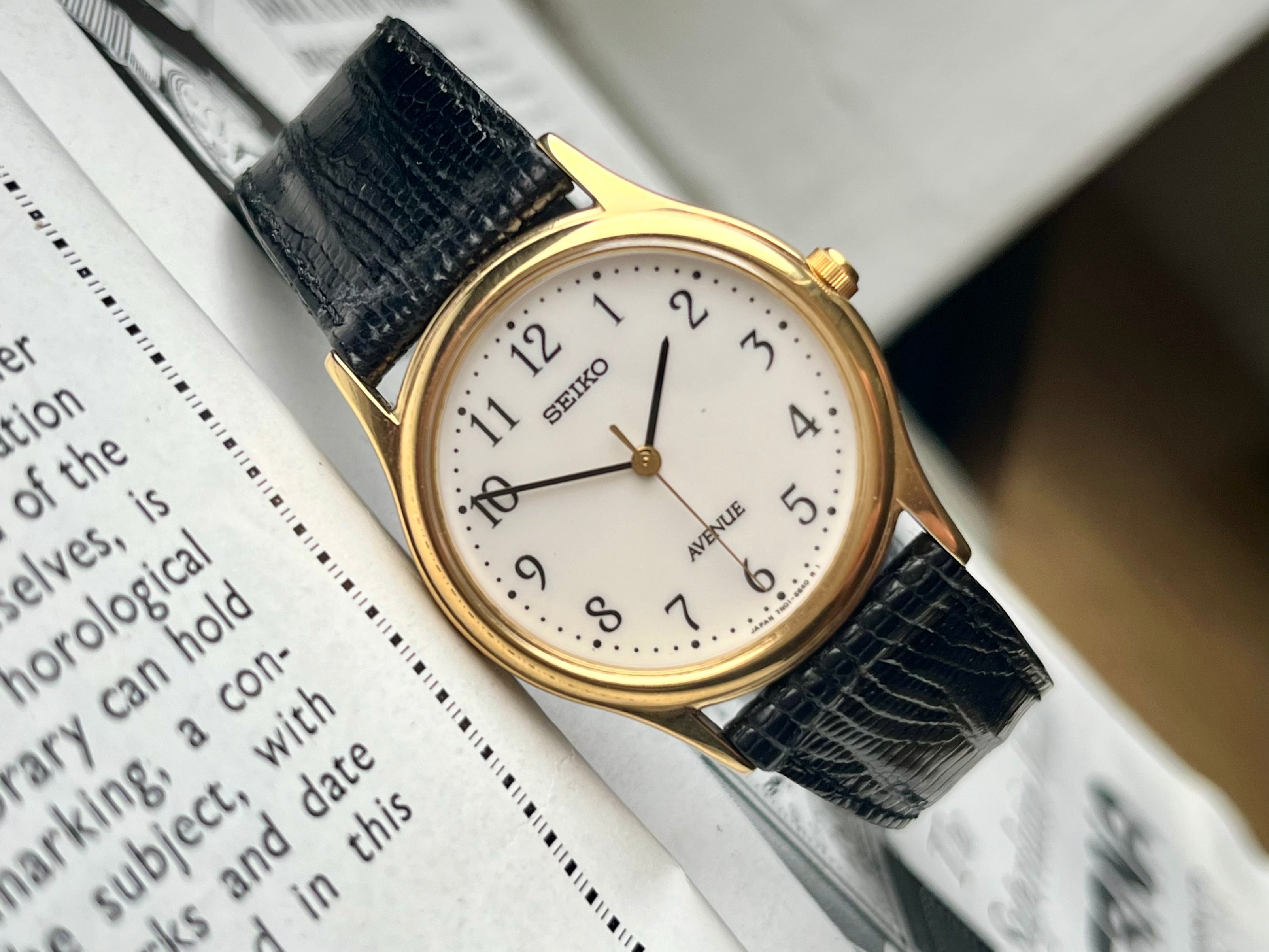 This Seiko Avenue is still in great condition, almost never worn. The Seiko Avenue series featured mostly middle-sizes watches like this one with a 30mm case, that was marketed as possible for men and women to wear.