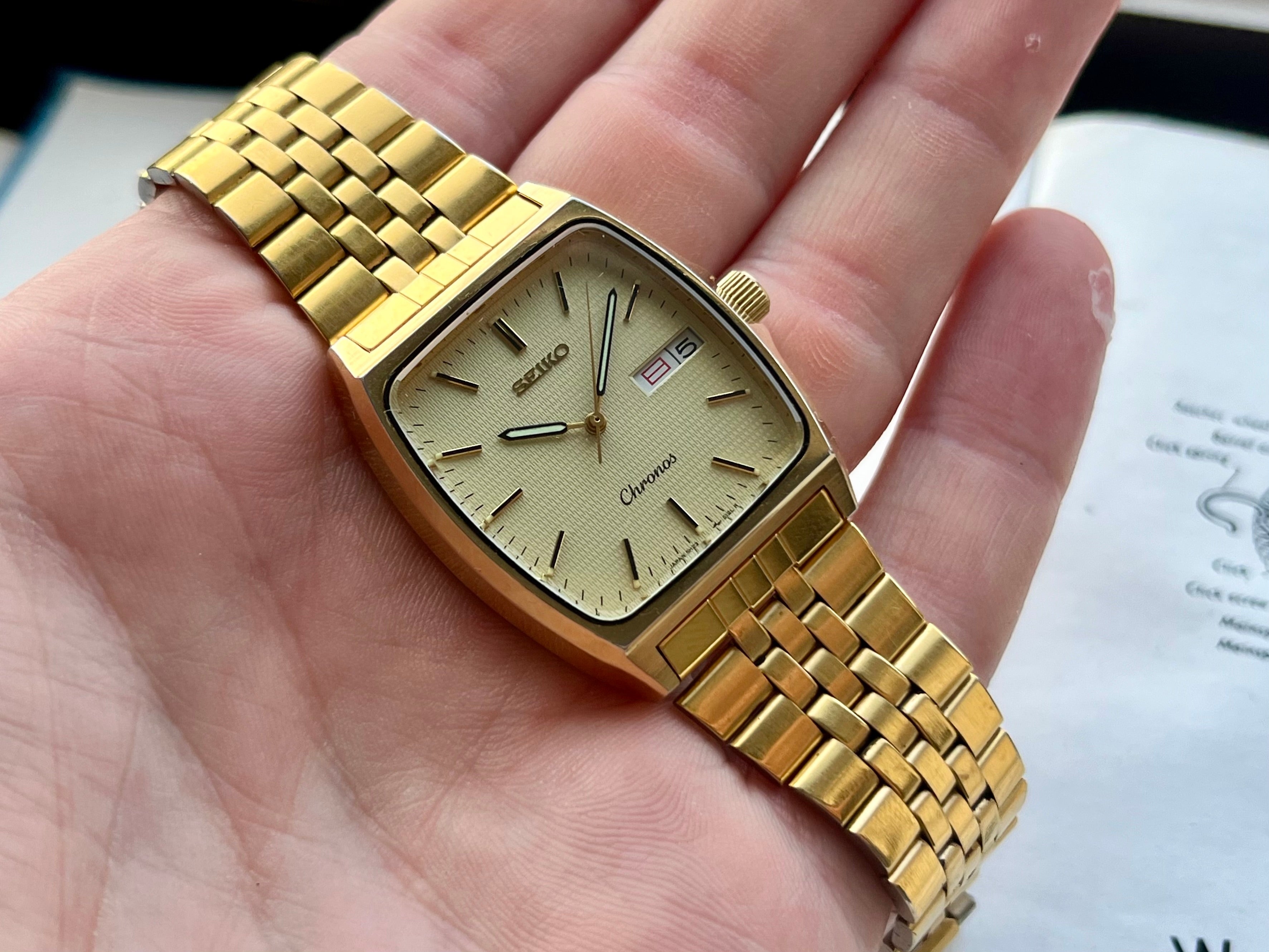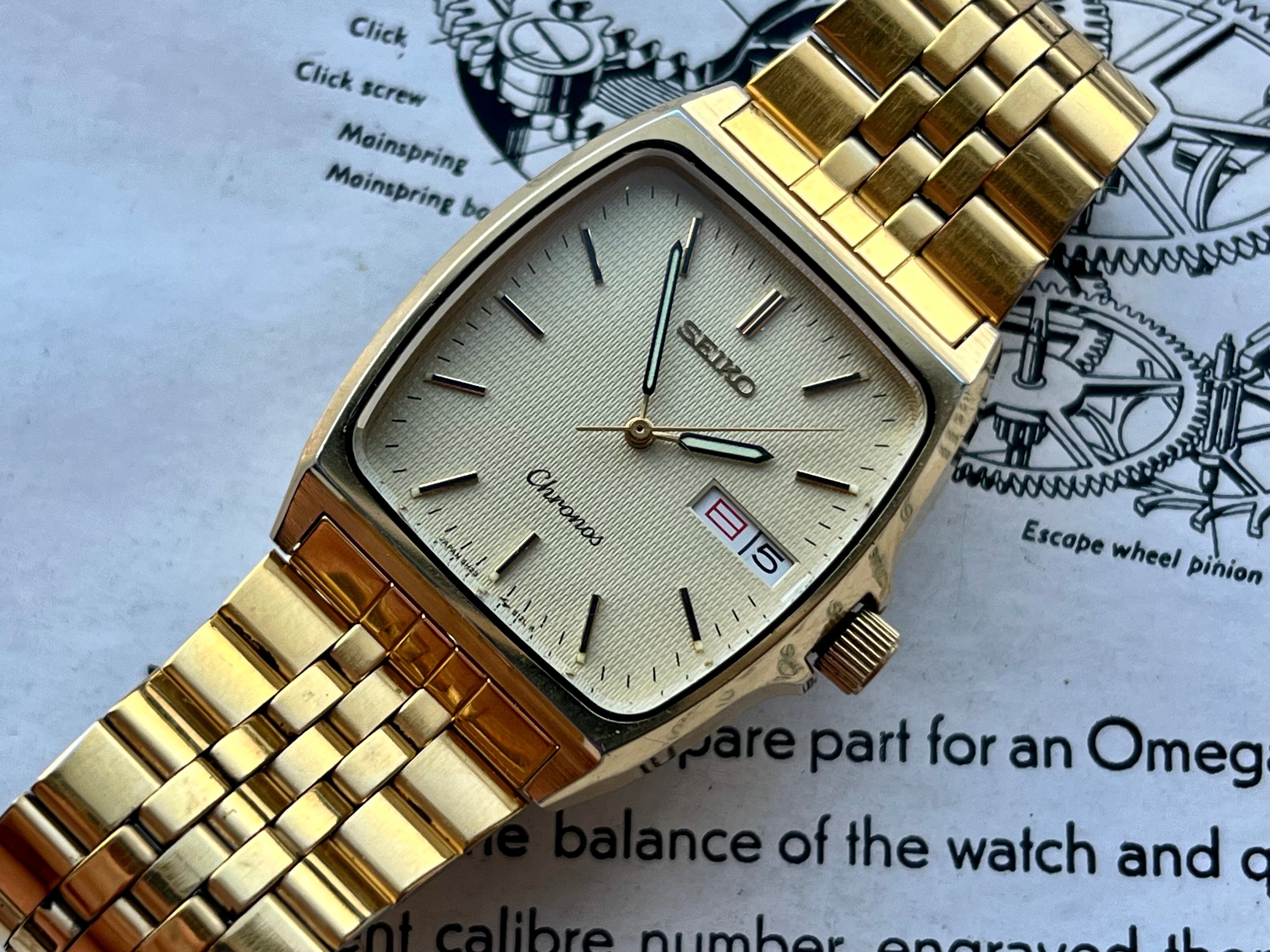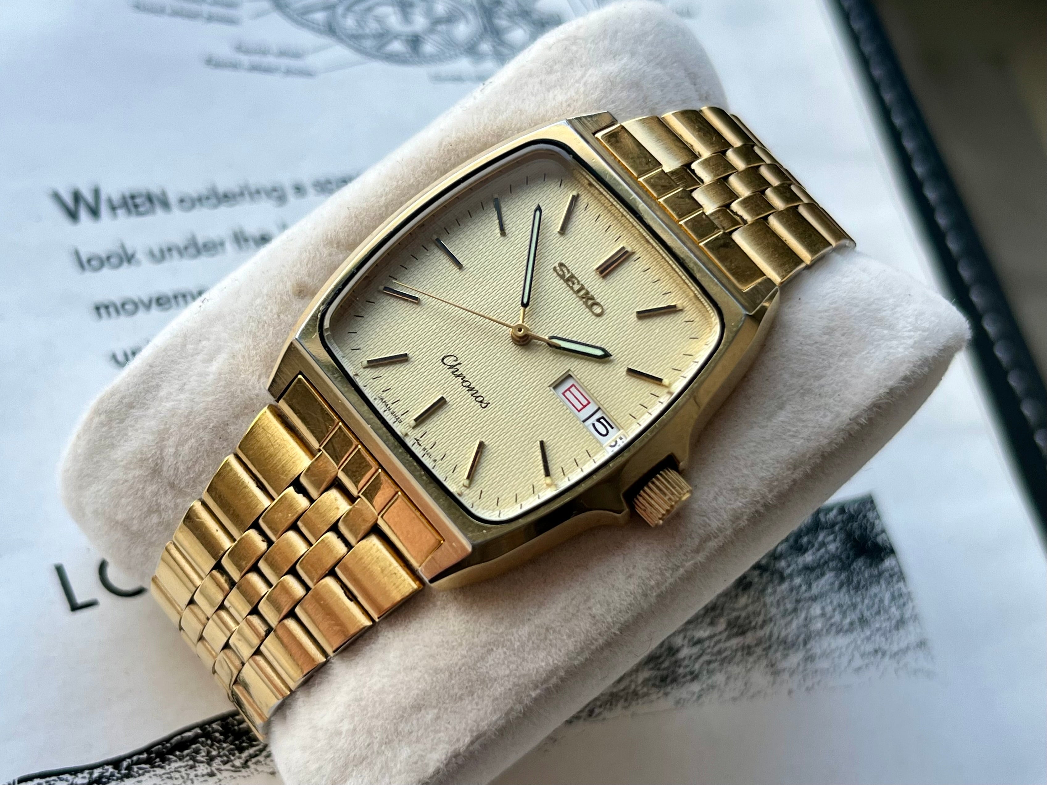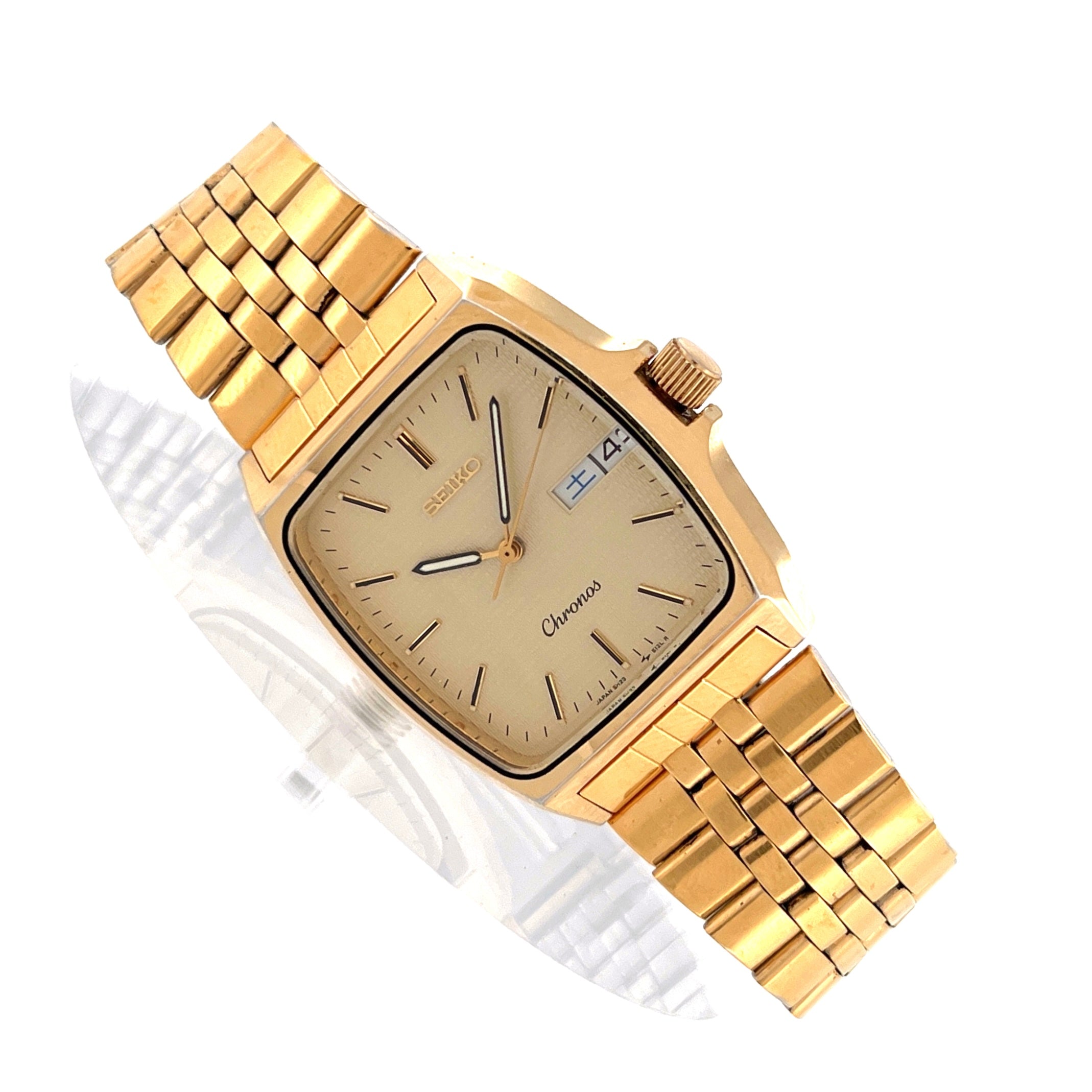Vintage Seiko Chronos 5H23-5110 Gold Rectangular 1988 JDM