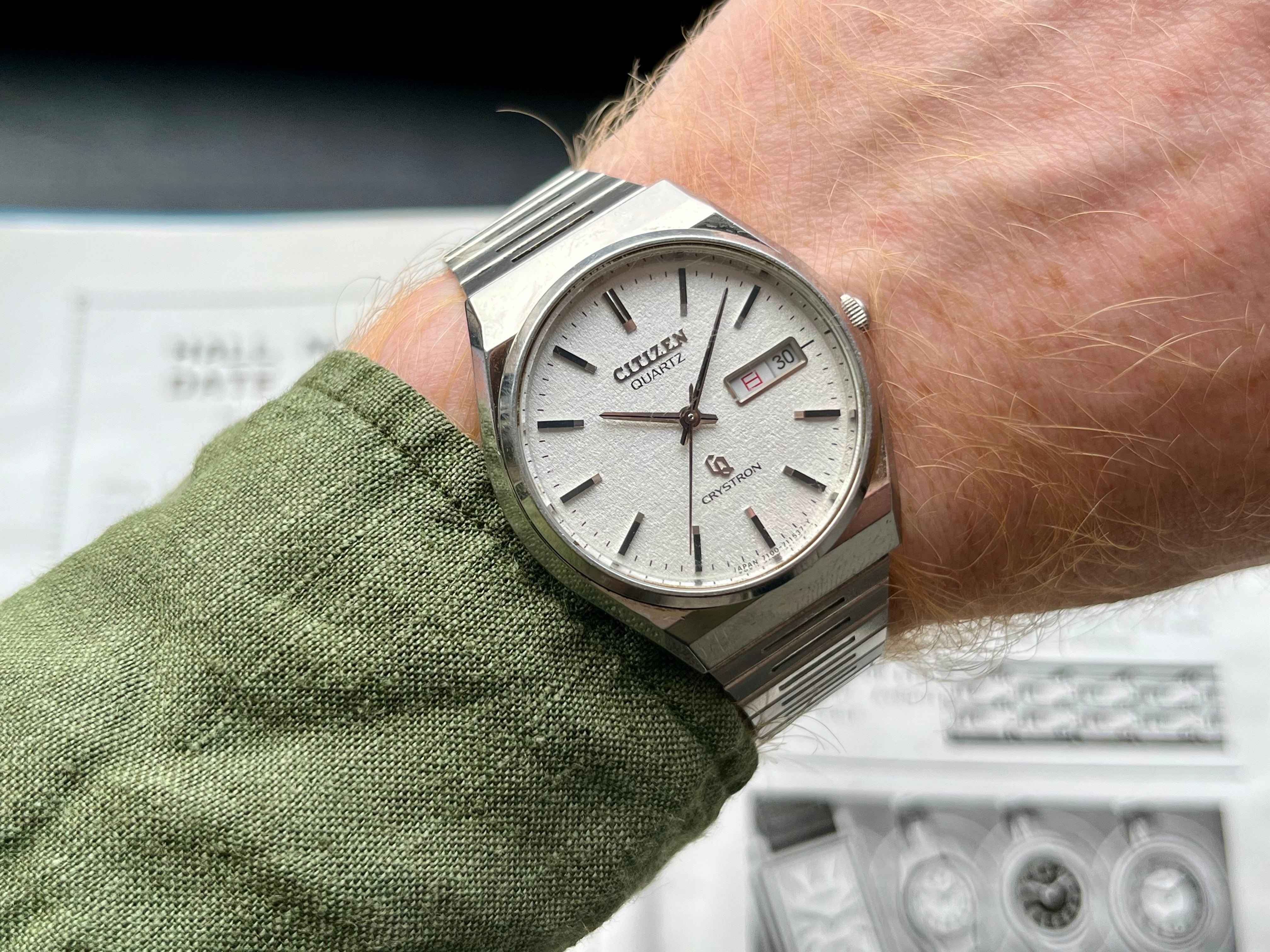 Vintage Citizen Watch Crystron 4-7303811 "Rice Paper" Dial Quartz JDM