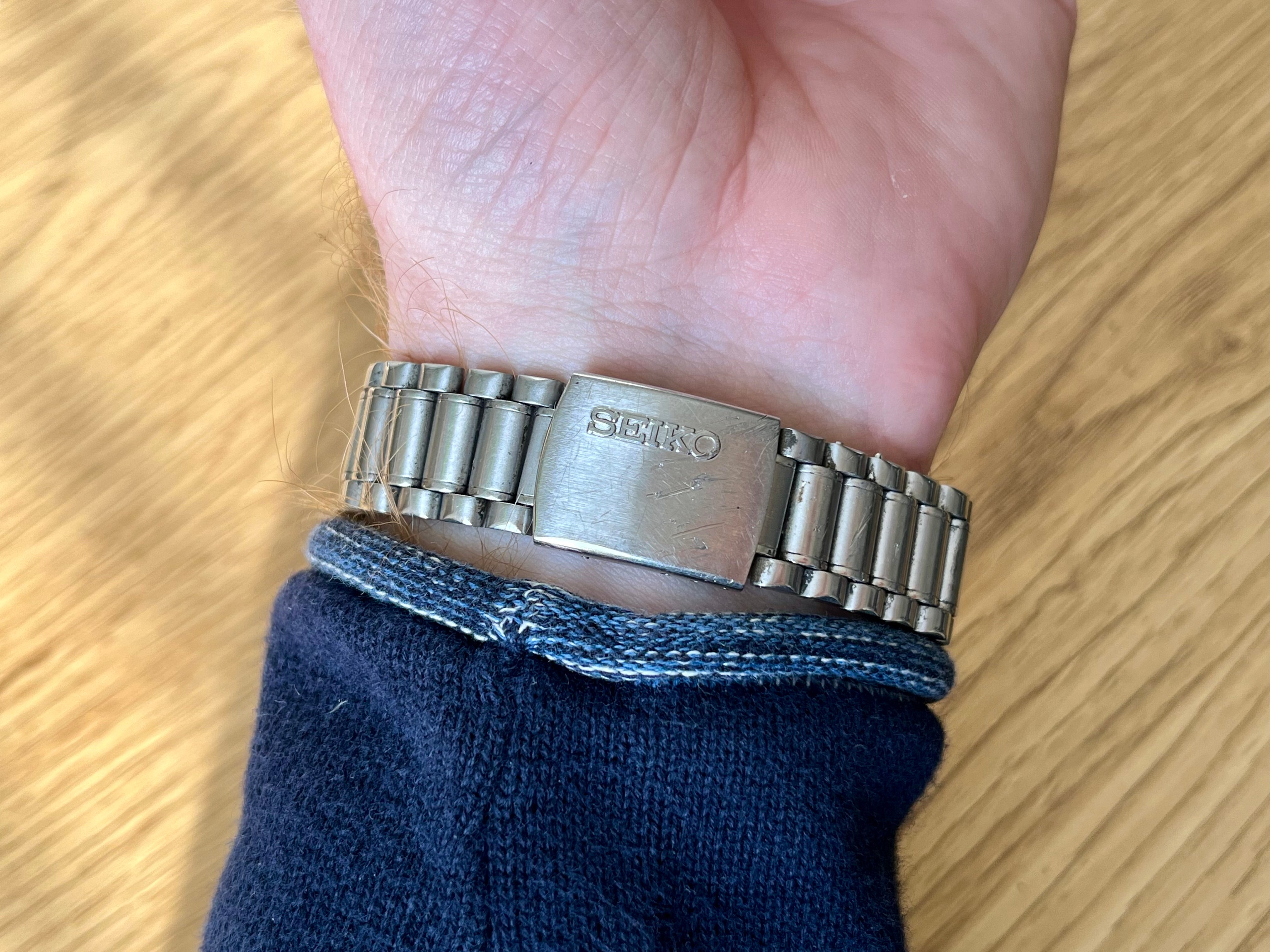 De Seiko Quartz Caliber 5P31 was een mid-entry kaliber met ±15 seconden/maand. Ik heb een nieuwe batterij geplaatst en het horloge functioneert goed. Het wordt geleverd op de originele band die tot ~18cm past.