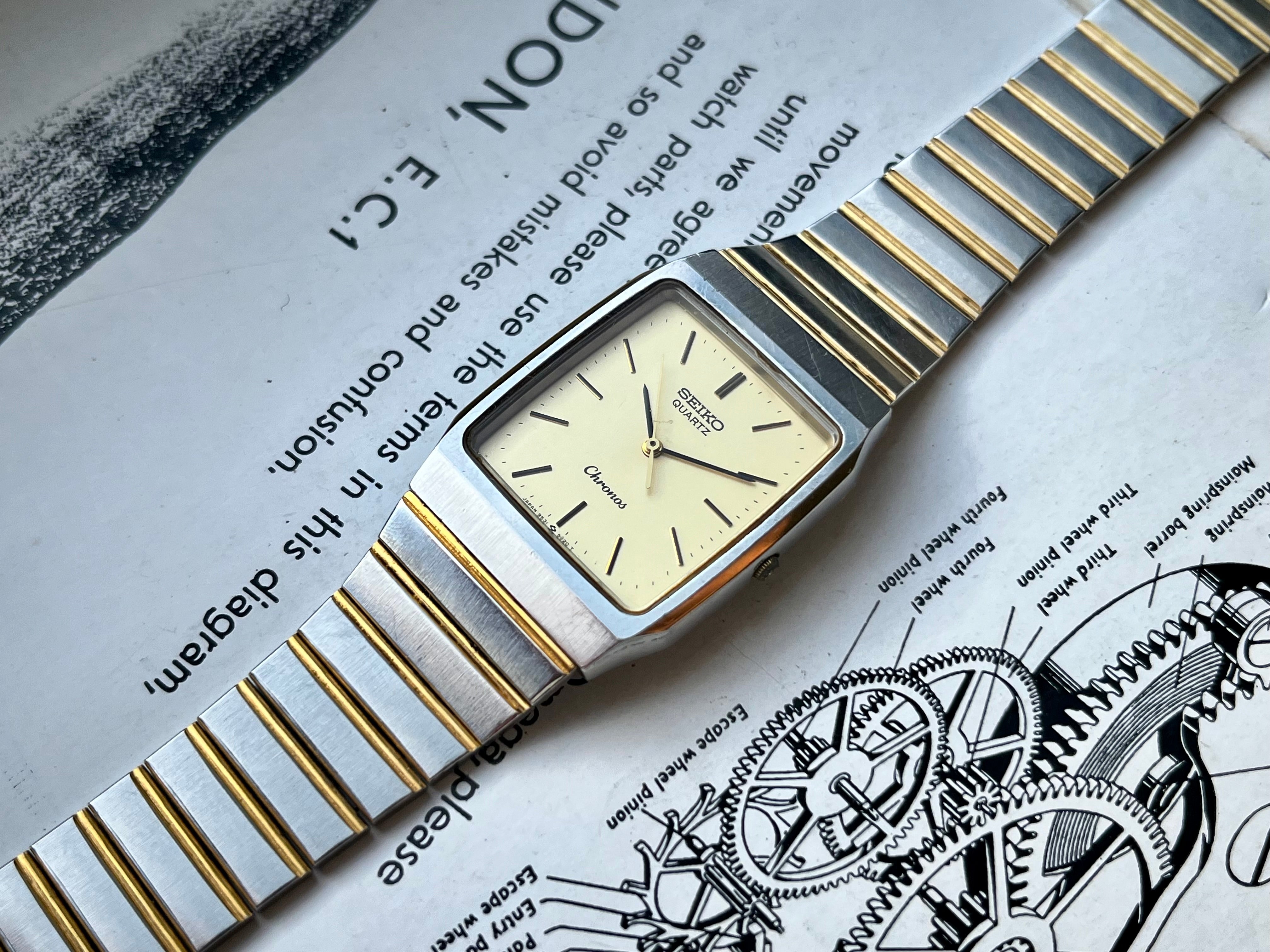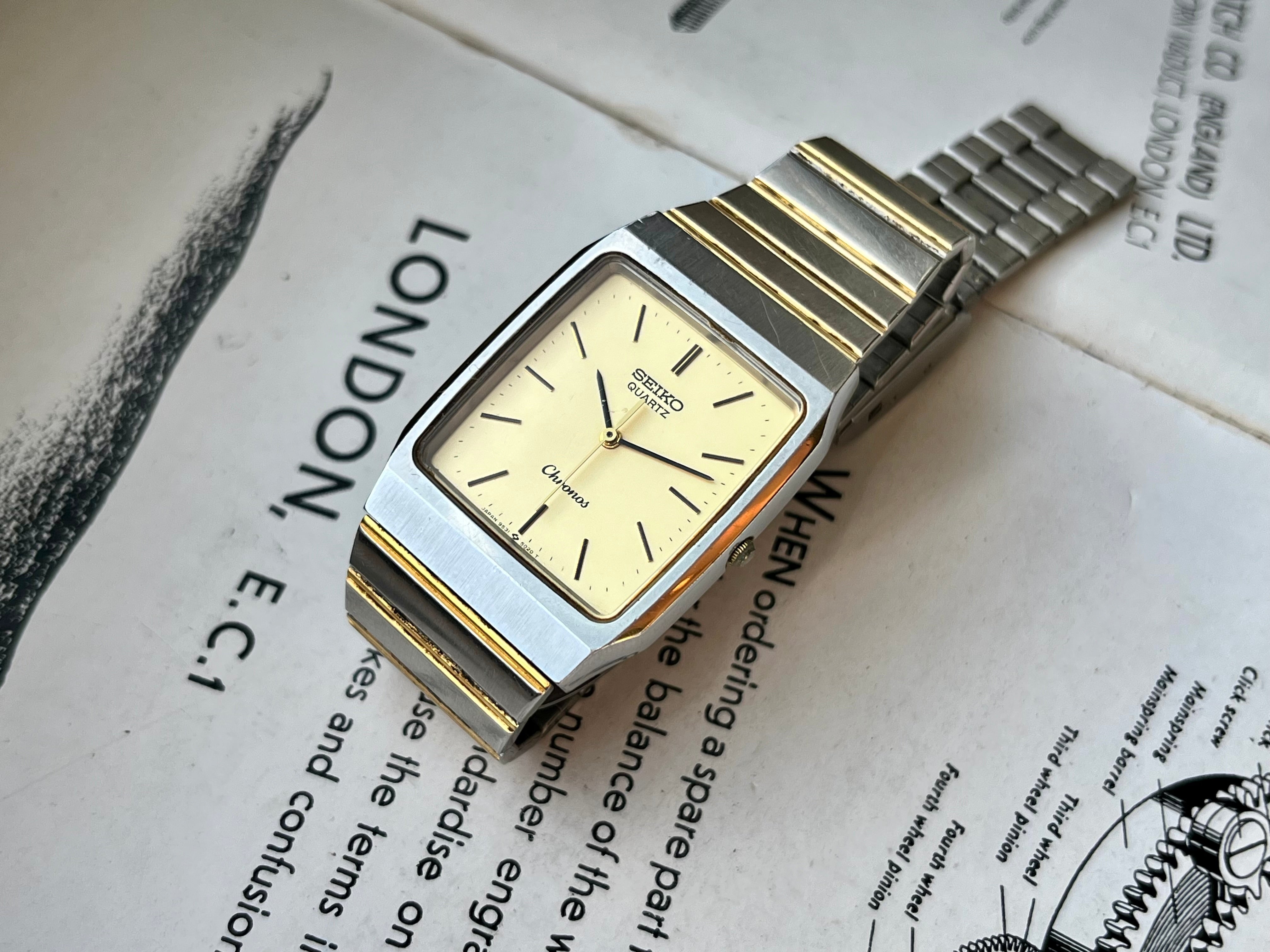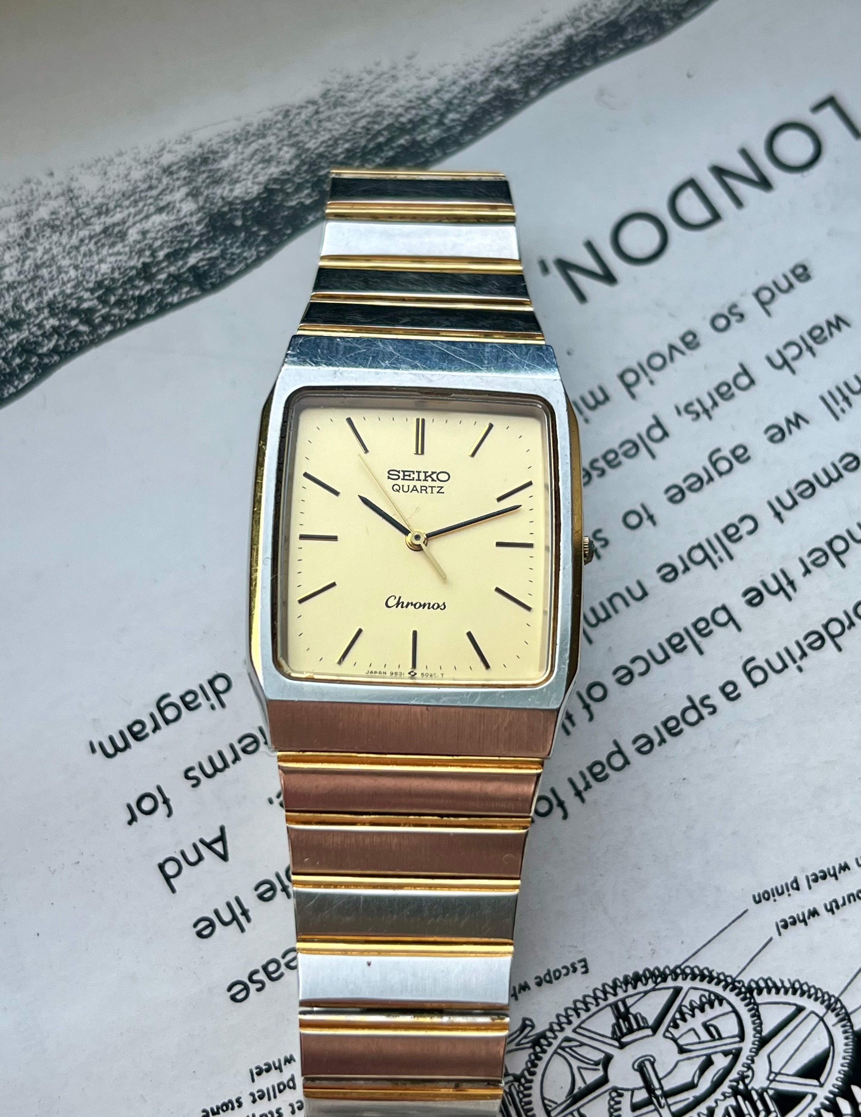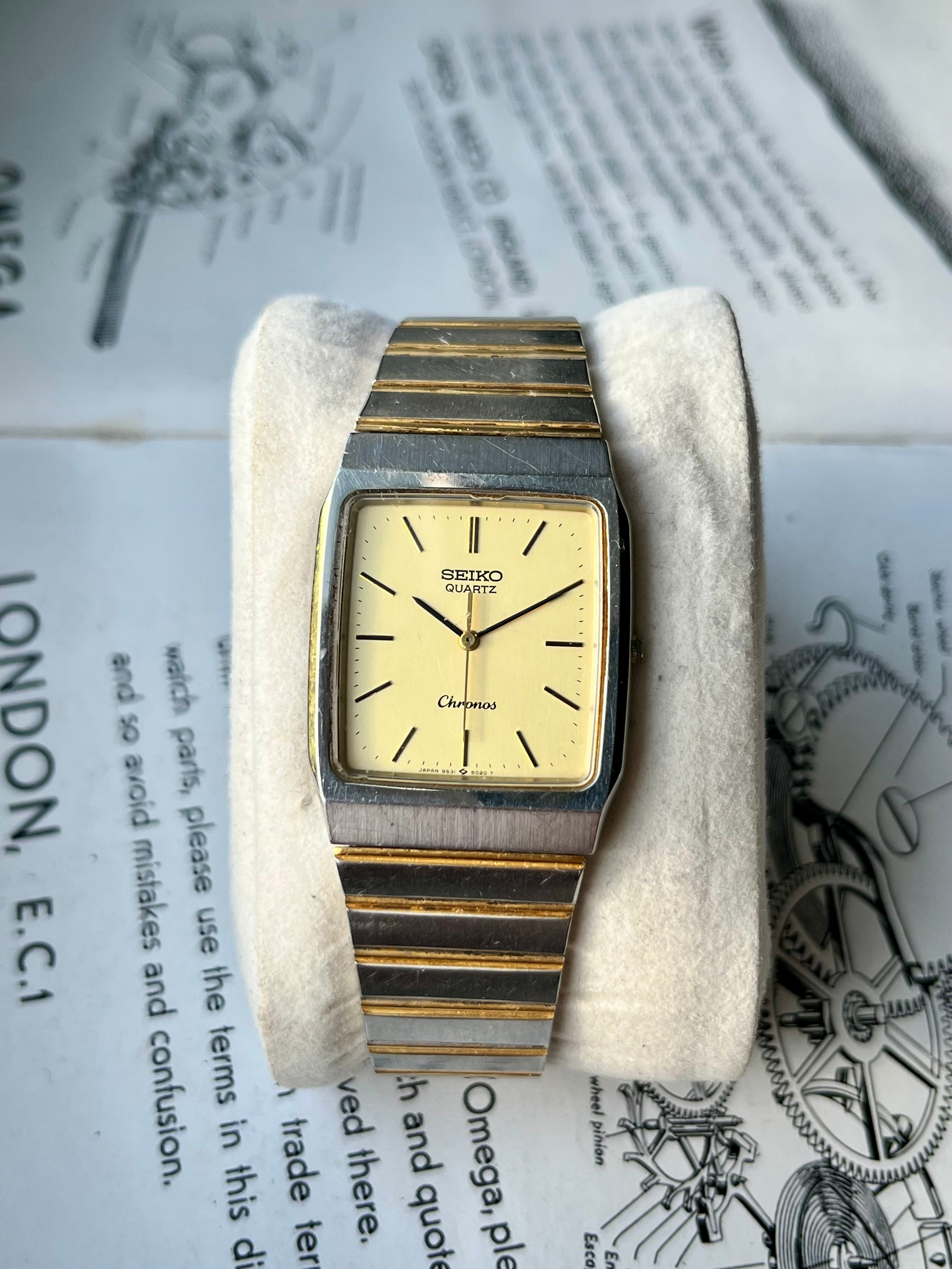 Vintage Seiko Chronos Tank 9531-5020 Bicolor JDM horloge 1987