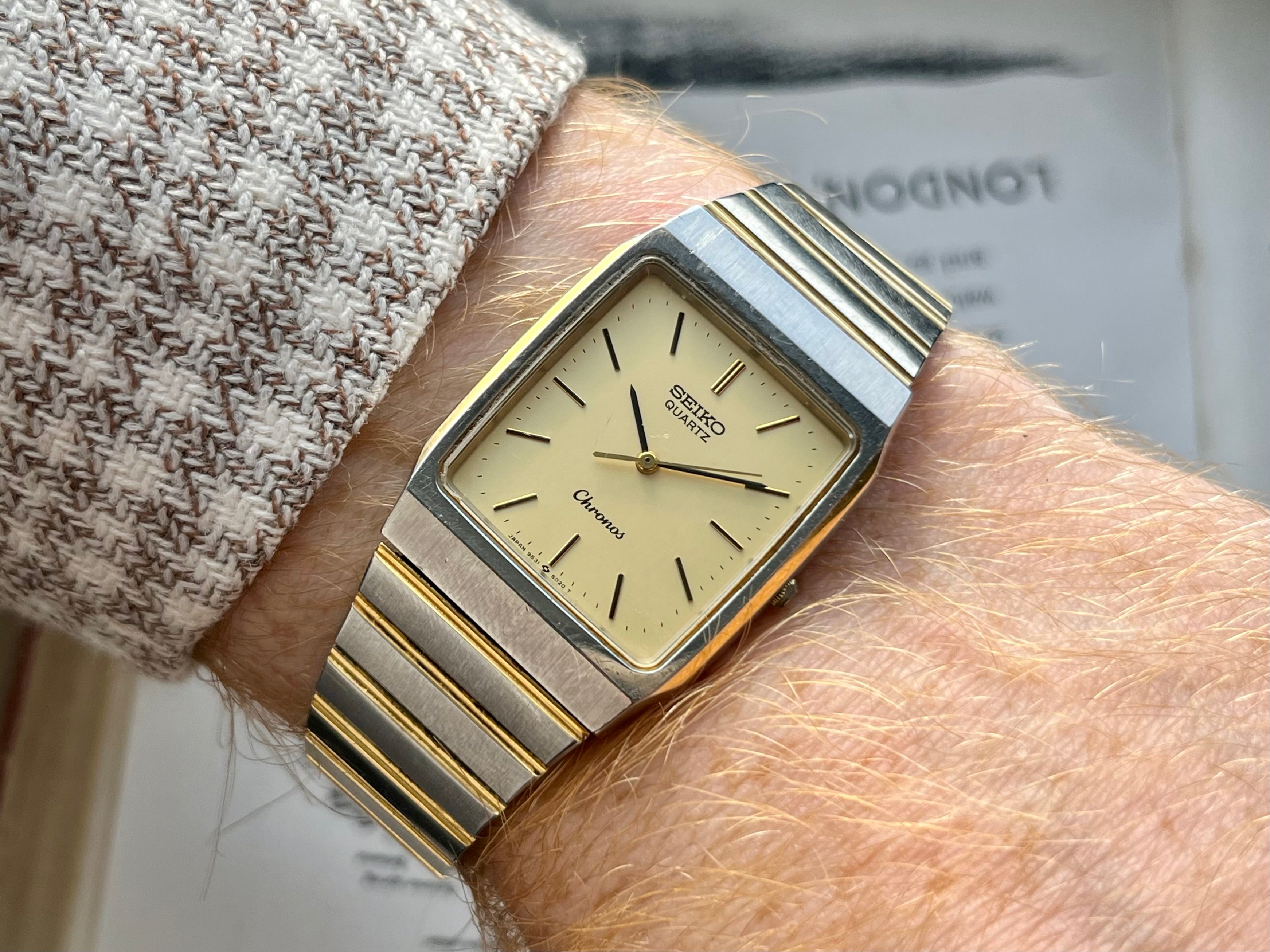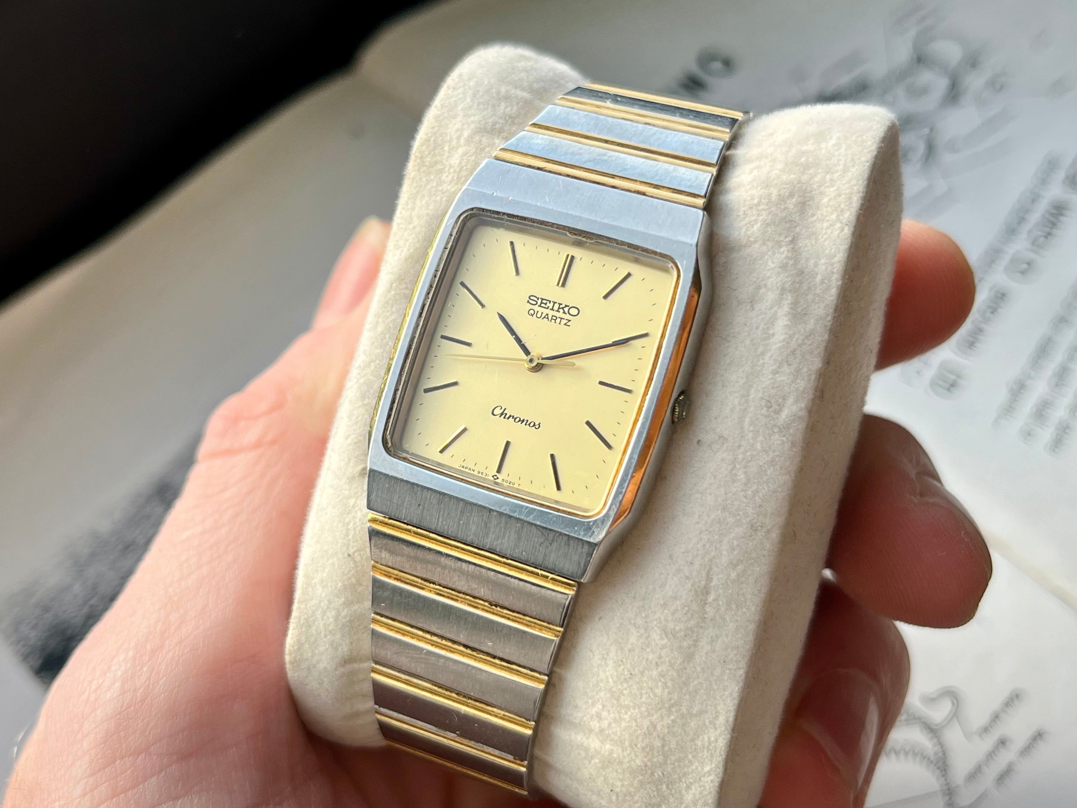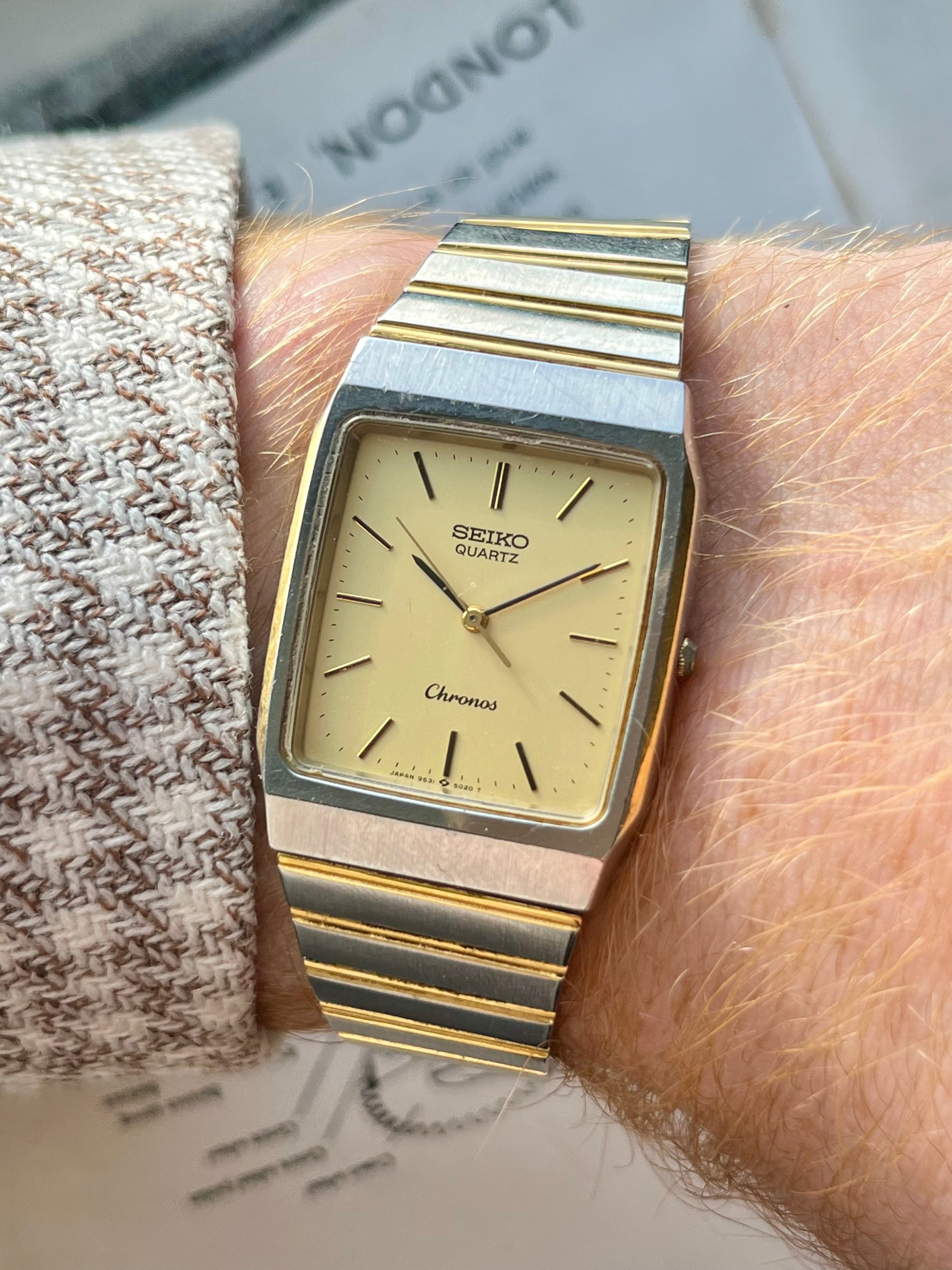 Vintage Seiko Chronos Tank 9531-5020 Bicolor JDM horloge 1987