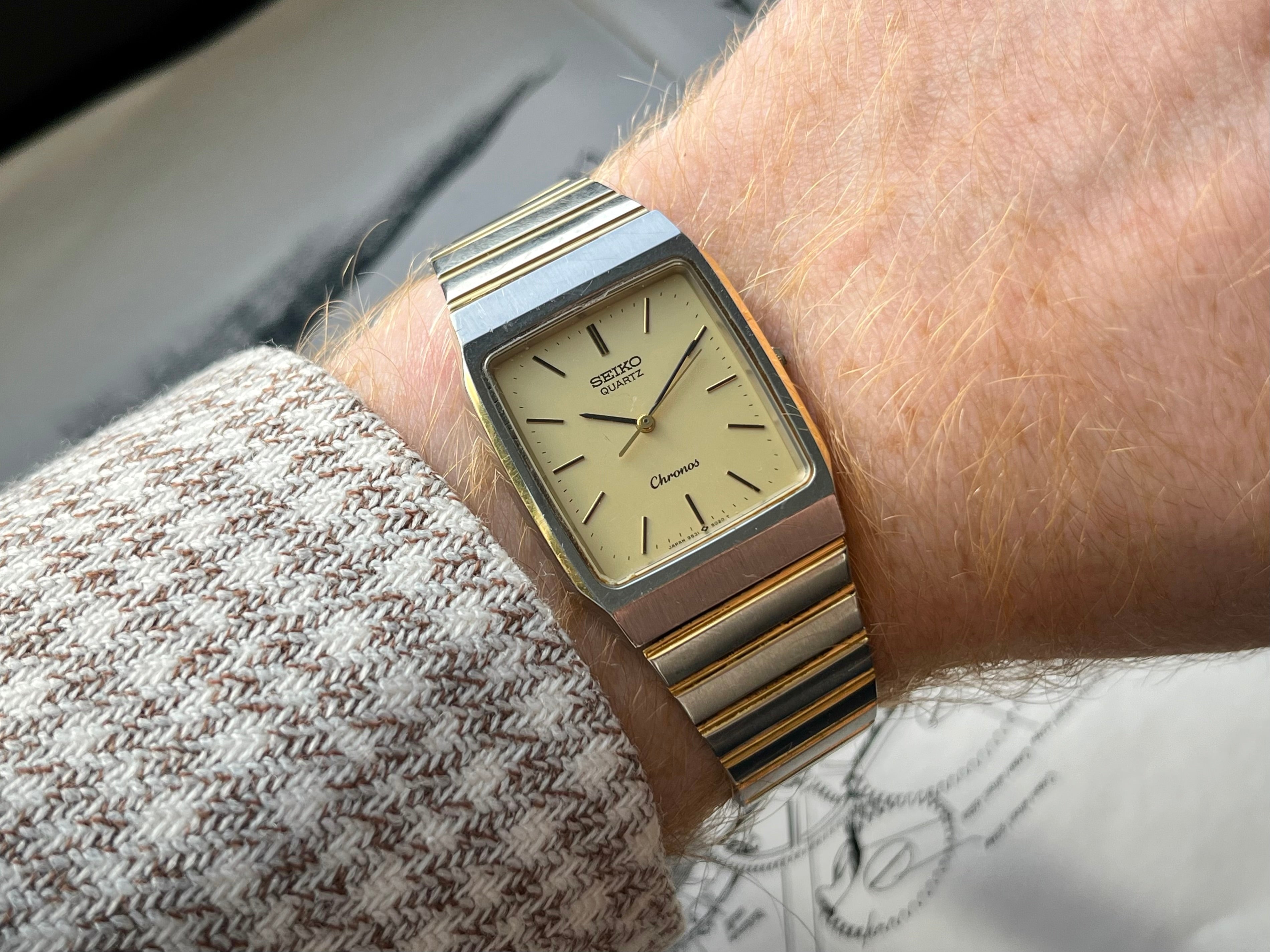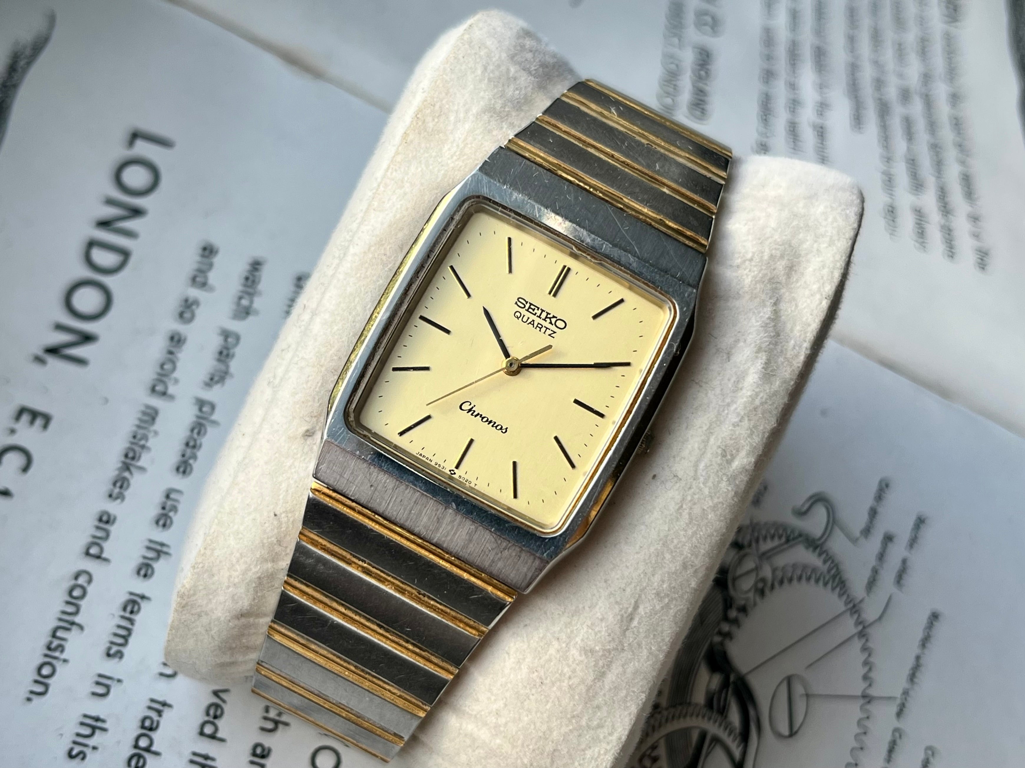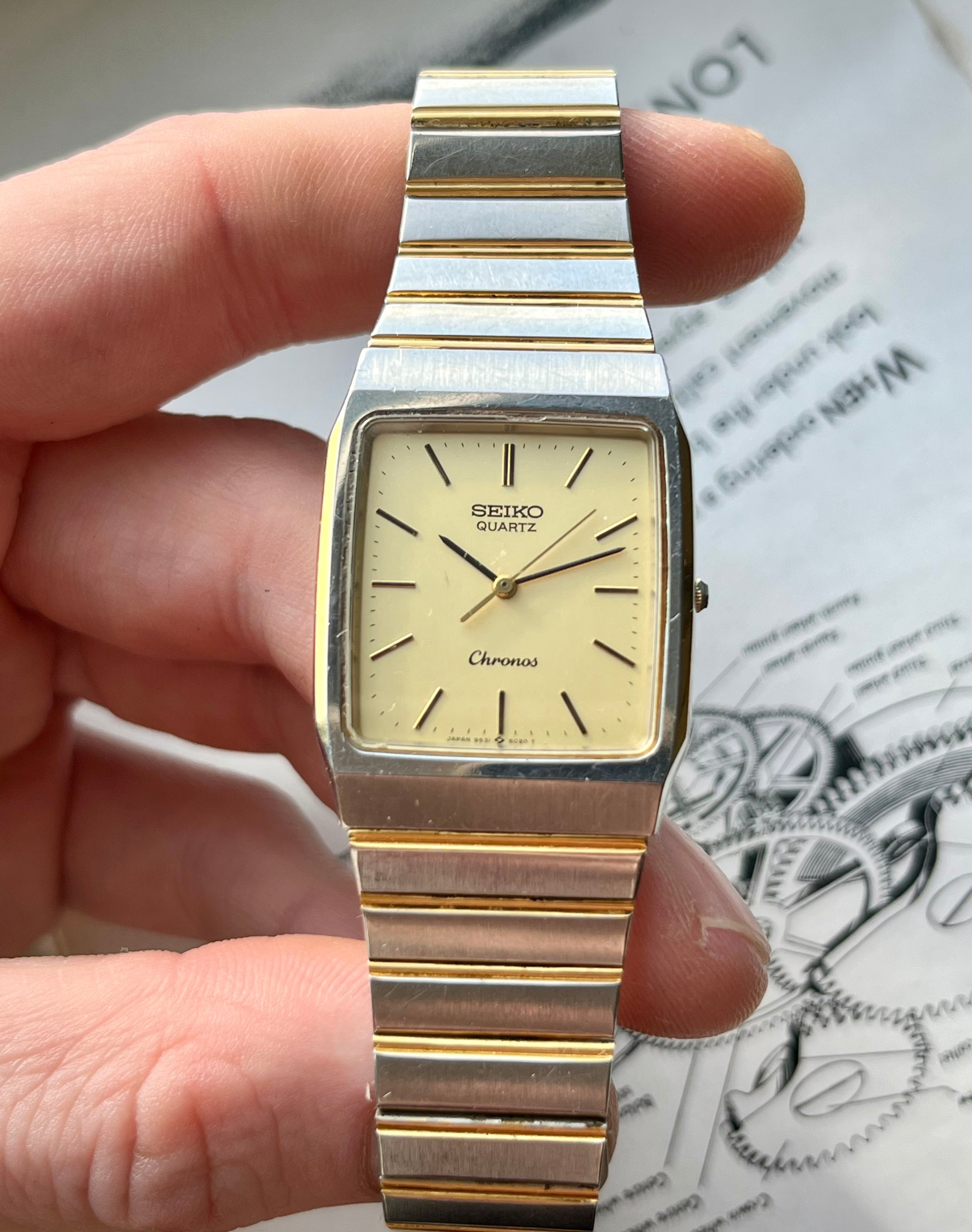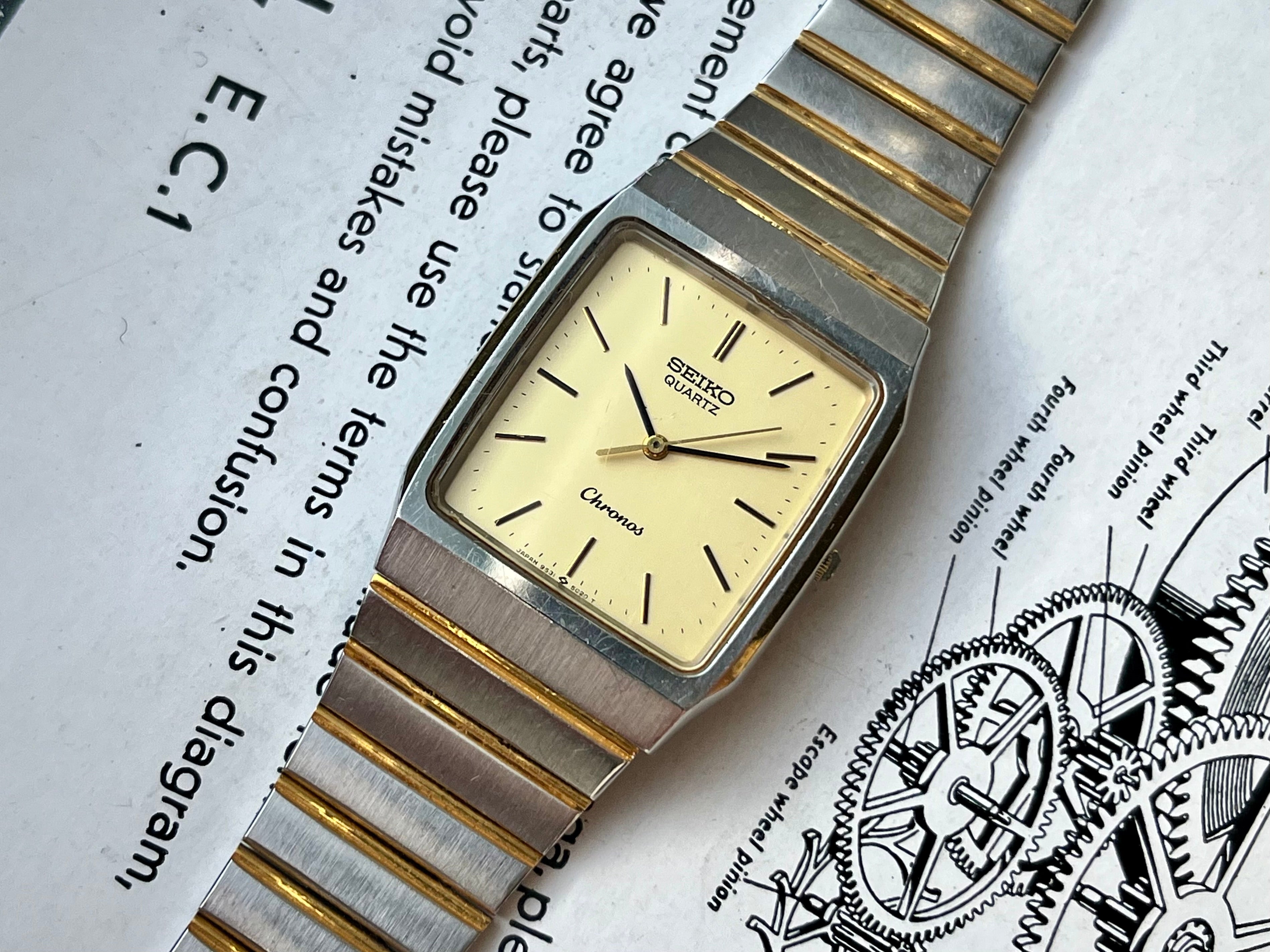 Vintage Seiko Chronos Tank 9531-5020 Bicolor JDM horloge 1987