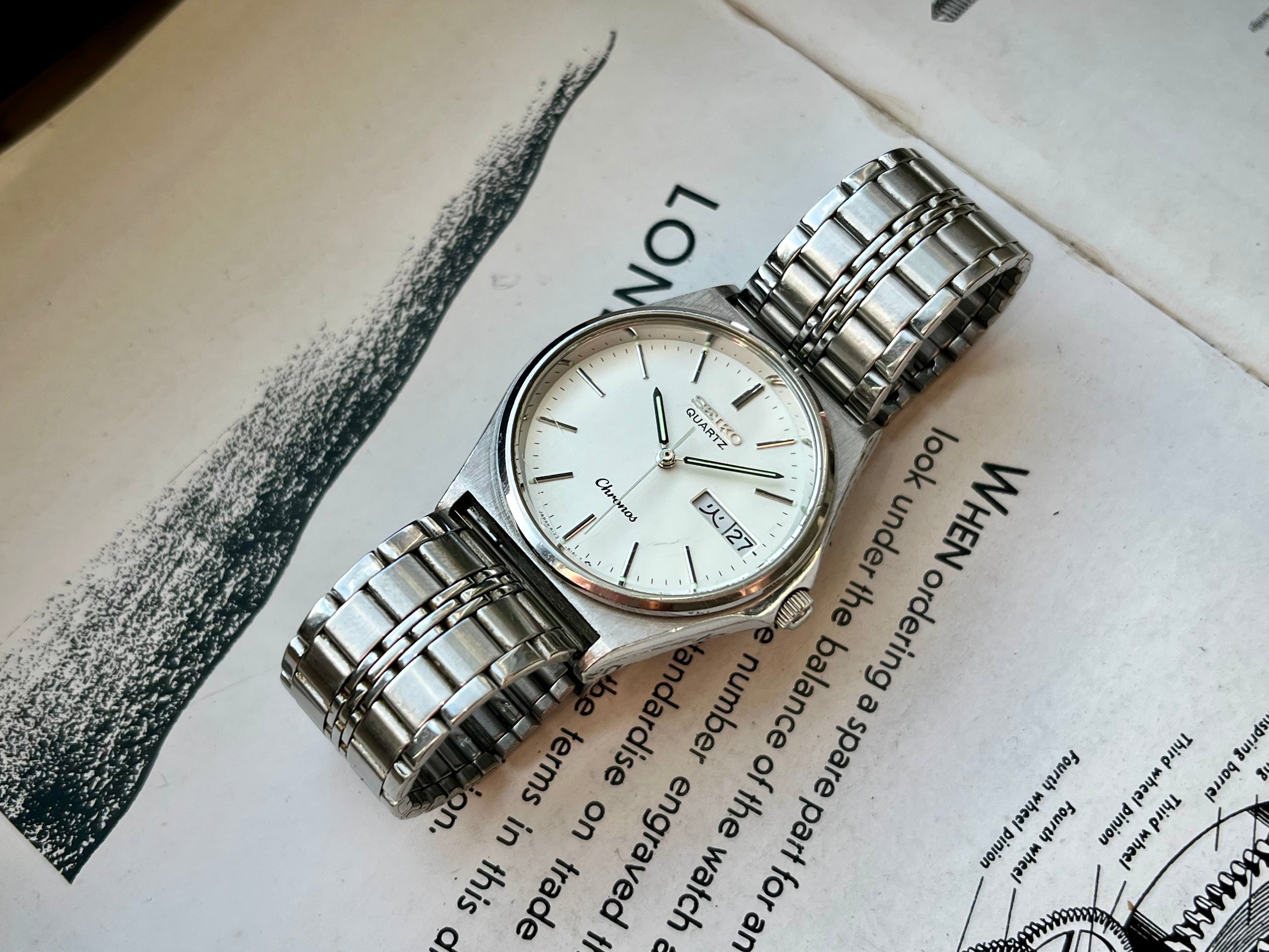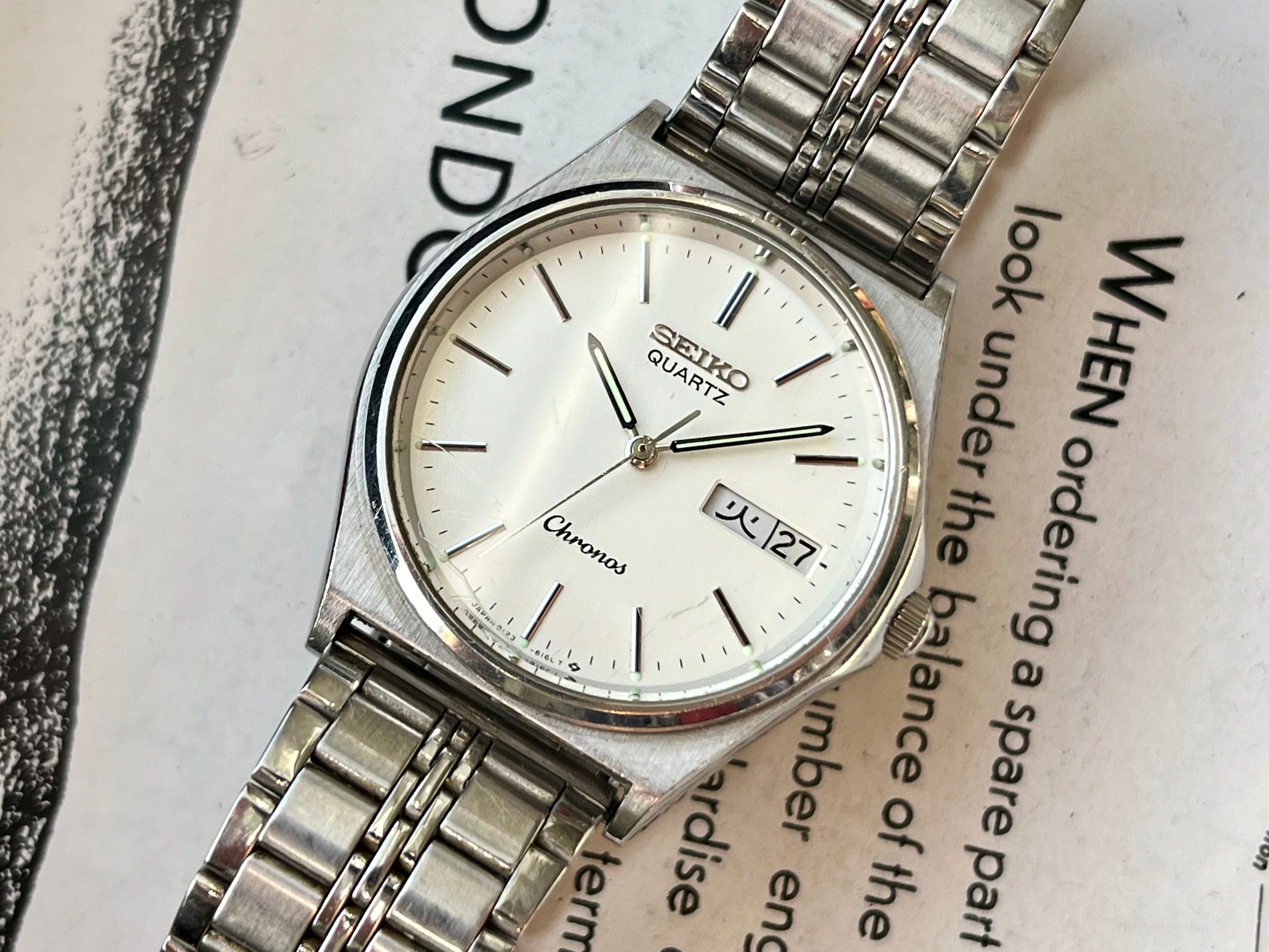 Vintage Seiko Chronos 8123-6130 Witte Wijzerplaat 1985 JDM Quartz