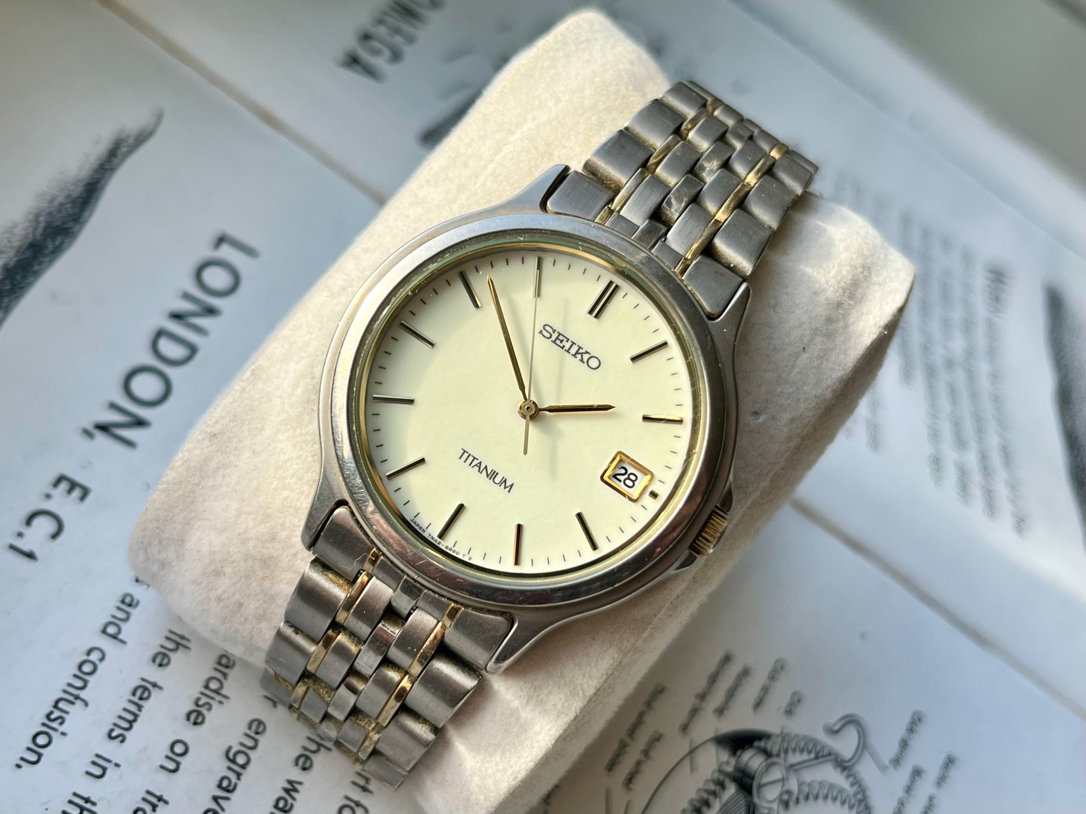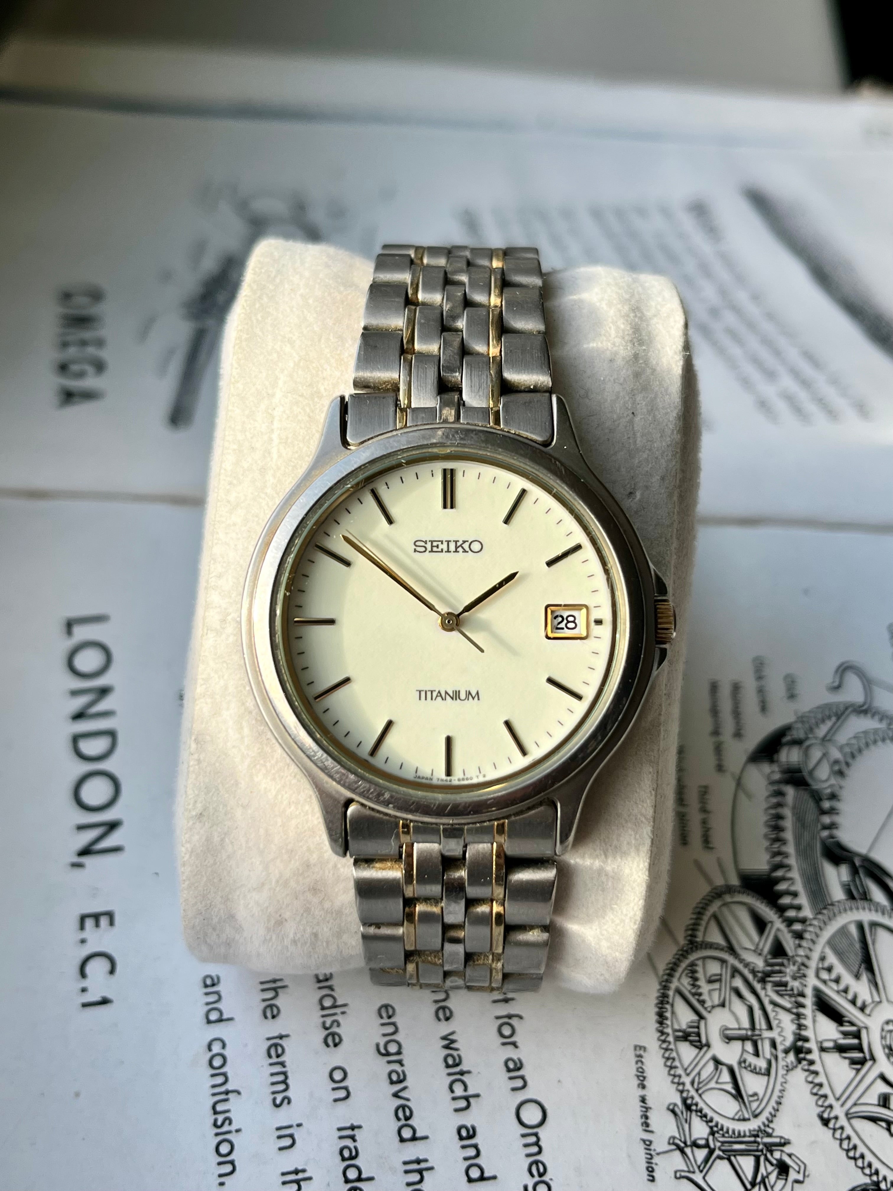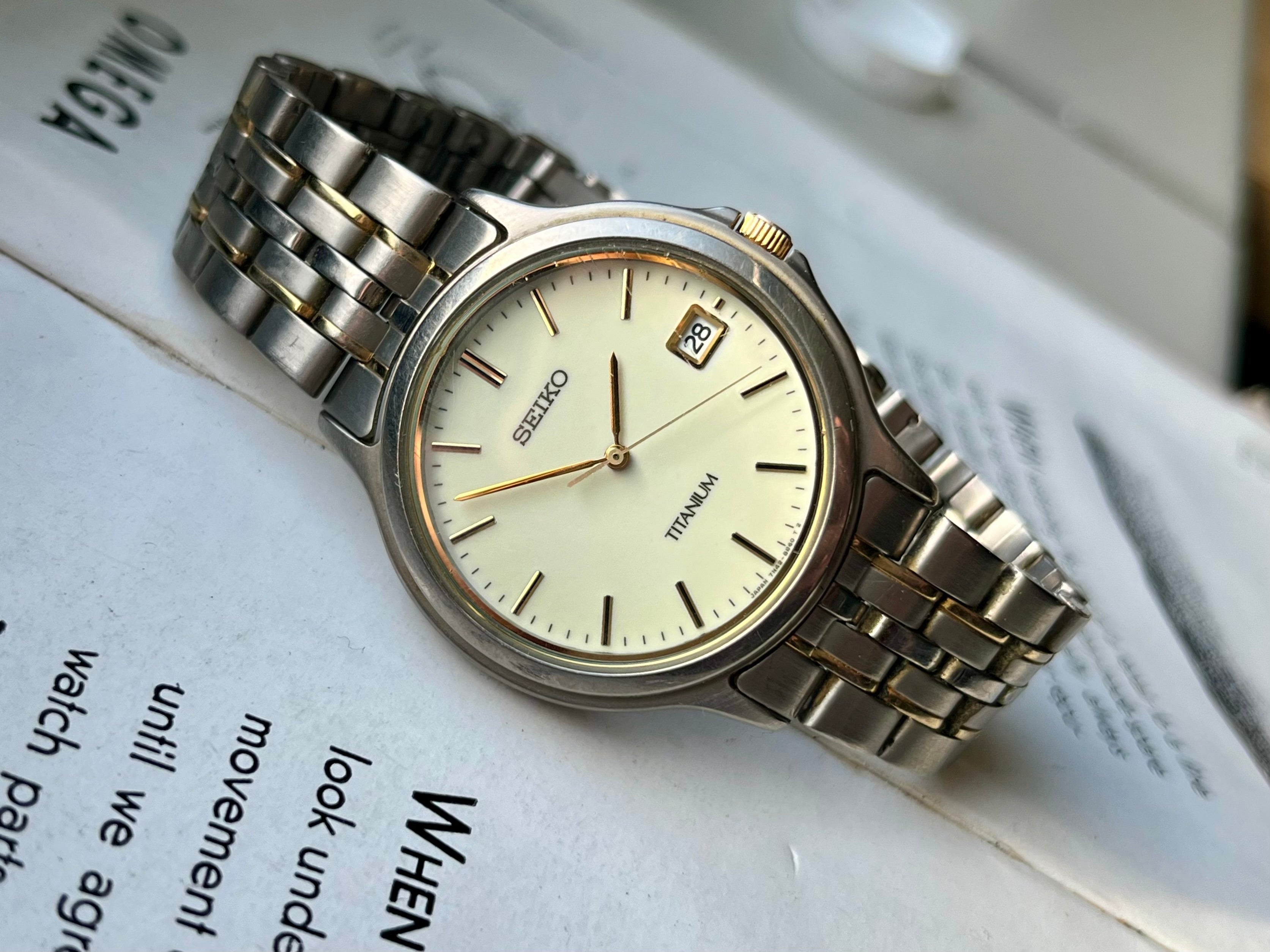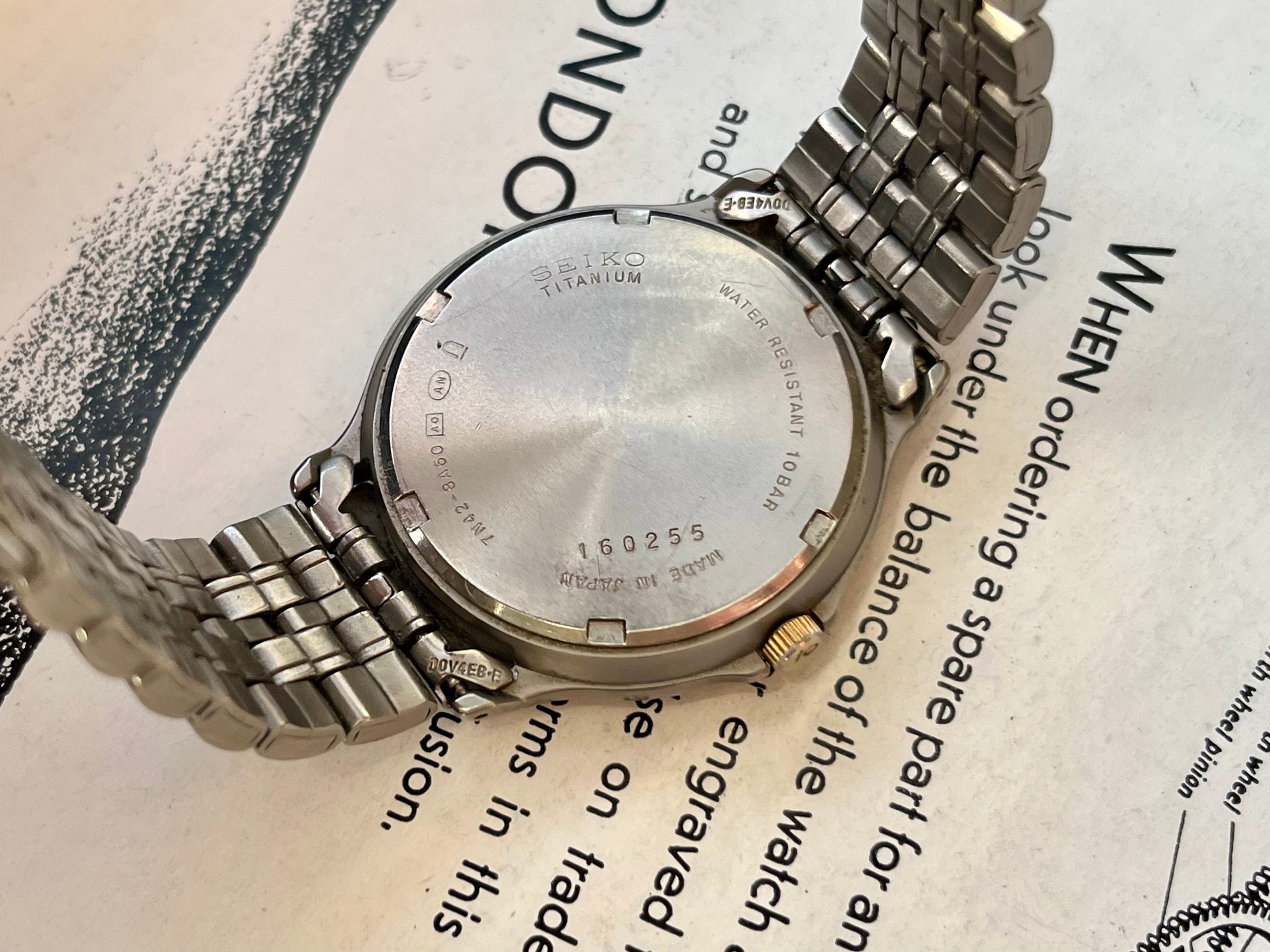 Vintage Seiko 7n42-8a60 Titanium Full Lume Dial 1991 Quartz Horloge